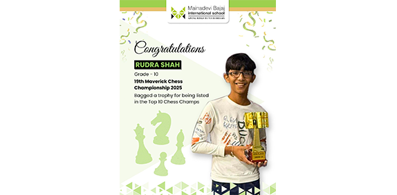 Rudra Shah,Grade 10, bagged a trophy for being listed in the Top 10 Chess Champs at the 19th Maverick Chess Championship 2025 held under the aegis of Mumbai Suburban District Chess Association. Congratulations Rudra!