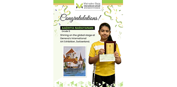Our star shines in Geneva! A big round of applause for Aadhya Narayanan, Grade 5 MBIS, whose artwork stood out at the International Art Exhibition in Geneva, Switzerland. Her beautiful painting was admired & sold and she returned home with a well-earned cash prize! Congratulations to Aadhya and her proud parents, MBIS beams with pride.