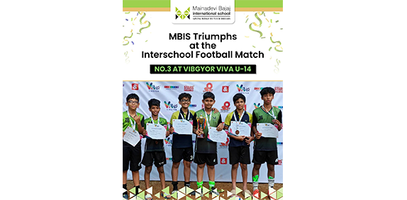 MBIS Triumphs at the Interschool Football Match! MBIS emerged victorious at the VIBGYOR VIVA U-14 boys' Football Match, securing a commendable 3rd place. The highlight was our students of Grades 5-6 participating in this category and making it big on the field. Congratulations, Dishant, Darsh, Kedar, Zurain, Agastya and Divyaan for your outstanding performance! MBIS is proud of you!!!