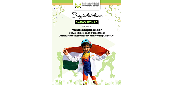 Aarav Bohra, Grade 2 MBIS, bagged the Bronze medal at the District Championship for Skating. He is qualified for the State finals to be held in December 2024.