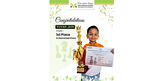 Yuvan Jain, Grade 1, secured the 1st place in the Interschool Chess (Under-8 category) Competition and the 2nd place in the Interschool Coin Pyraminx Cubes.