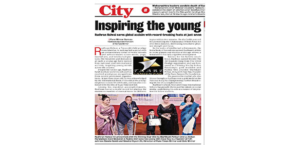 Rudhran, Grade 2 MBIS features in Pune Times Mirror,05 October 2025, for his World Records achievements in Music, Yoga, Martial Arts and Intellectual pursuits. Proud moment indeed!!!