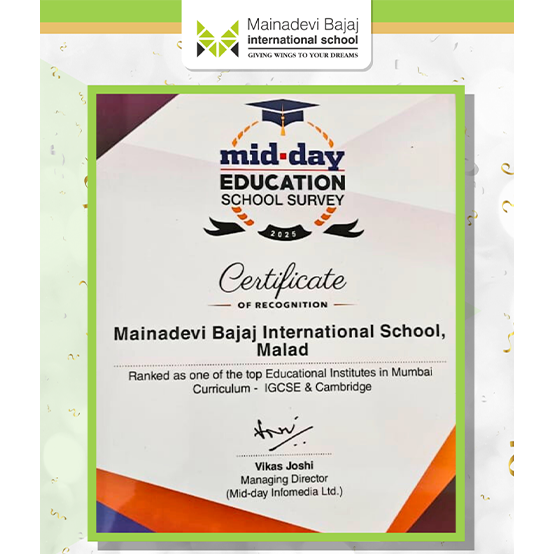 MBIS is ranked 1st among Schools with International Curriculum in Zone D (Goregaon-west, Malad, Kandivali, Jogeshwari and Borivali) as per Times School Survey 2023